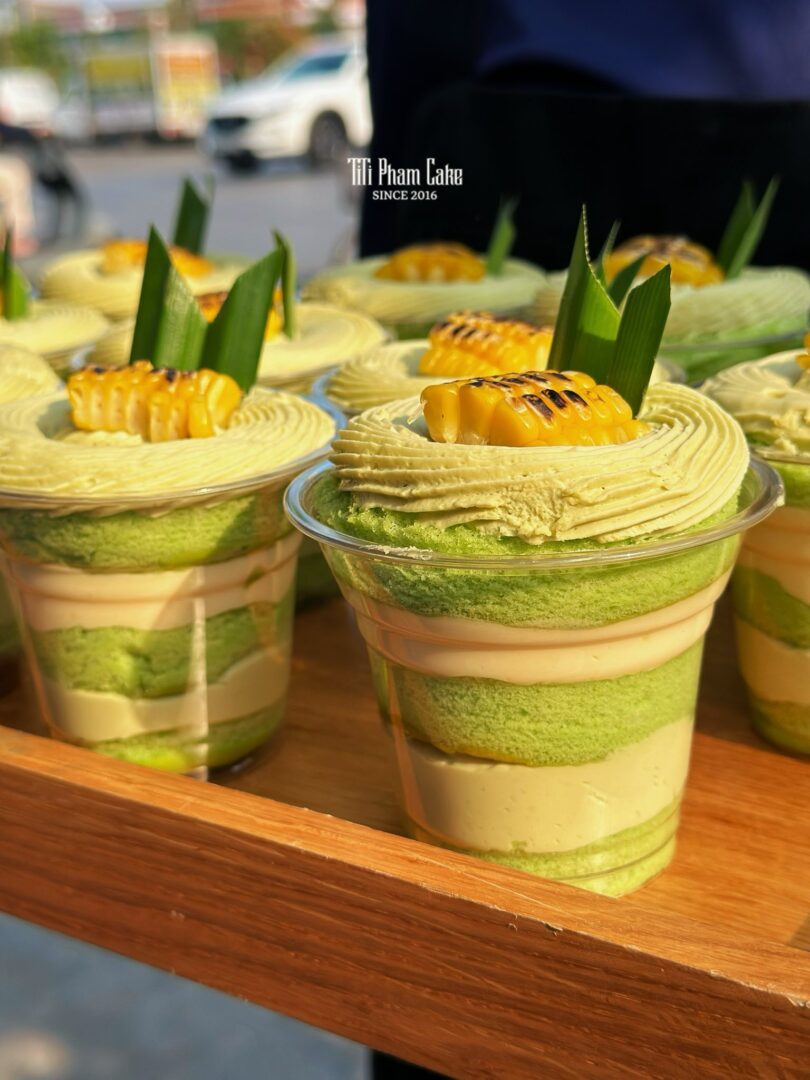 Lớp Phủ Kem Lá Nếp & Ngô Nướng: Phía trên cùng được bao phủ bởi lớp kem lá nếp nhẹ tênh. Điểm nhấn đặc biệt chính là những hạt ngô nướng thơm bùi, mang đến một chút dư vị mộc mạc, “rất quen mà cũng rất lạ”.