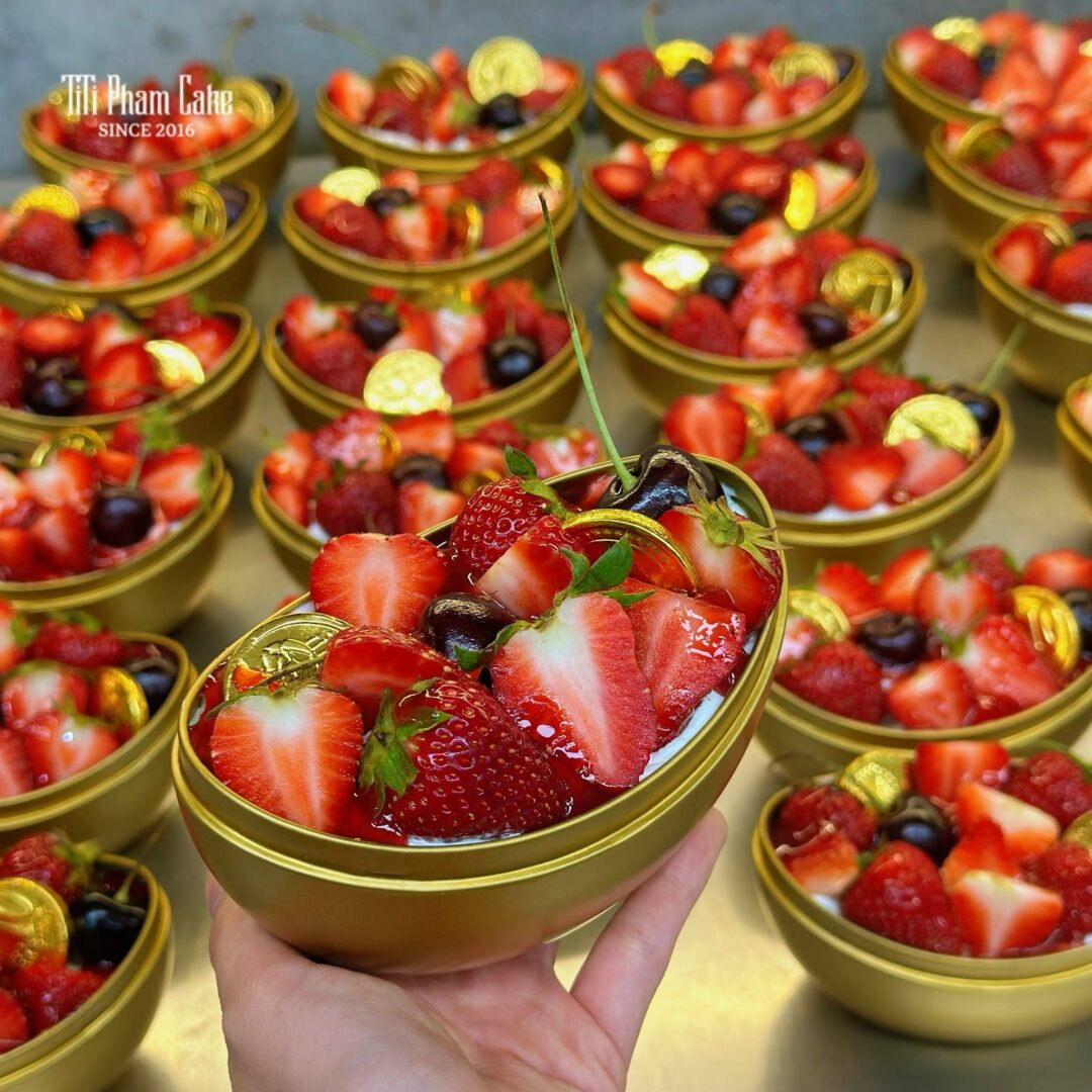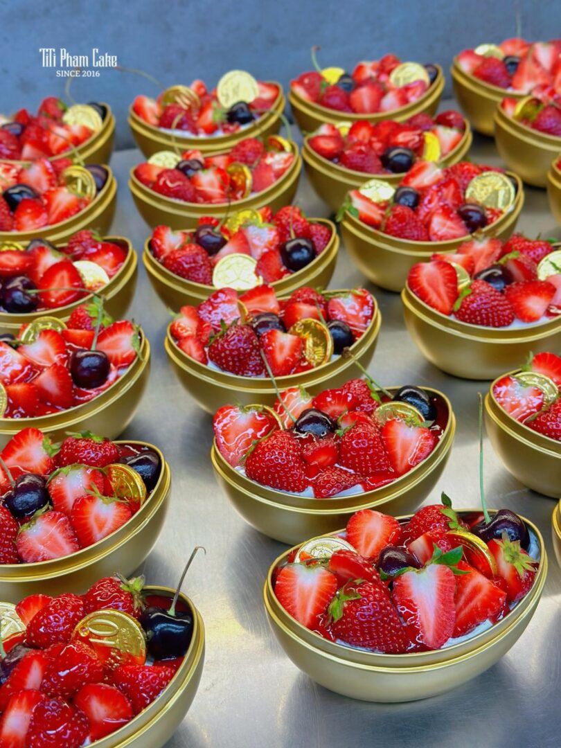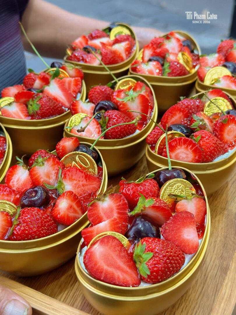 Sắc đỏ tươi tắn của dâu tây kết hợp cùng vỏ hộp vàng kim không chỉ tạo nên một tuyệt phẩm về thị giác mà còn mang ý nghĩa tâm linh sâu sắc: